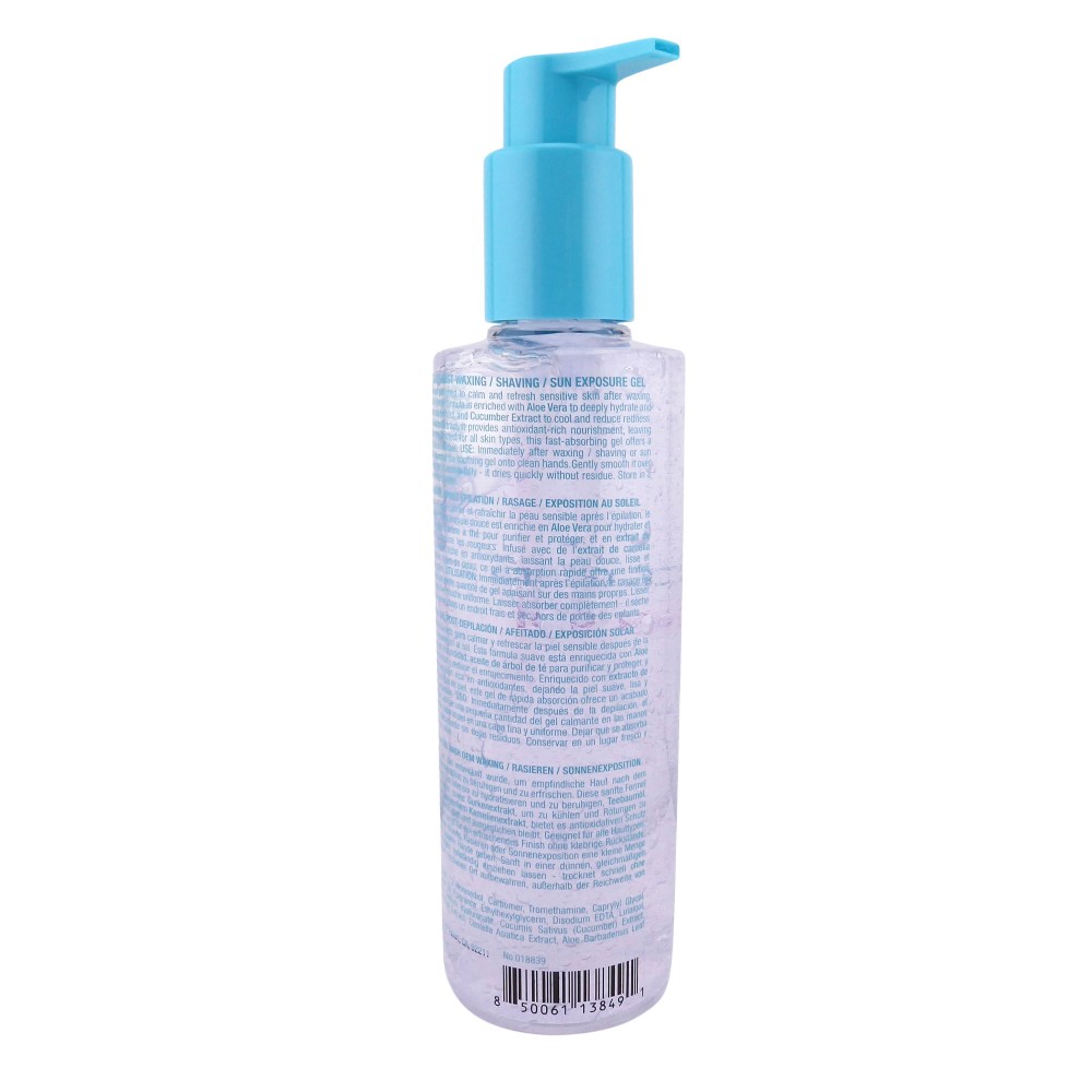 A crystal-clear, lightweight gel designed to calm and refresh sensitive skin after waxing, shaving, or sun exposure. This gentle formula is enriched with Aloe Vera to deeply hydrate and soothe, Tea Tree Oil to purify and protect, and Cucumber Extract to cool and reduce redness. Infused with Japanese Camellia Extract, it provides antioxidant-rich nourishment, leaving skin soft, smooth, and balanced. Perfect for all skin types, this fast-absorbing gel offers a refreshing finish with no sticky residue. Use: Immediately after waxing / shaving or sun exposure,e squeeze a small amount of the soothing gel onto clean hands. Gently smooth it over the skin in a thin, even layer. Let it absorb fully - it dries quickly without residue. Store in a cool, dry place; keep away from children.